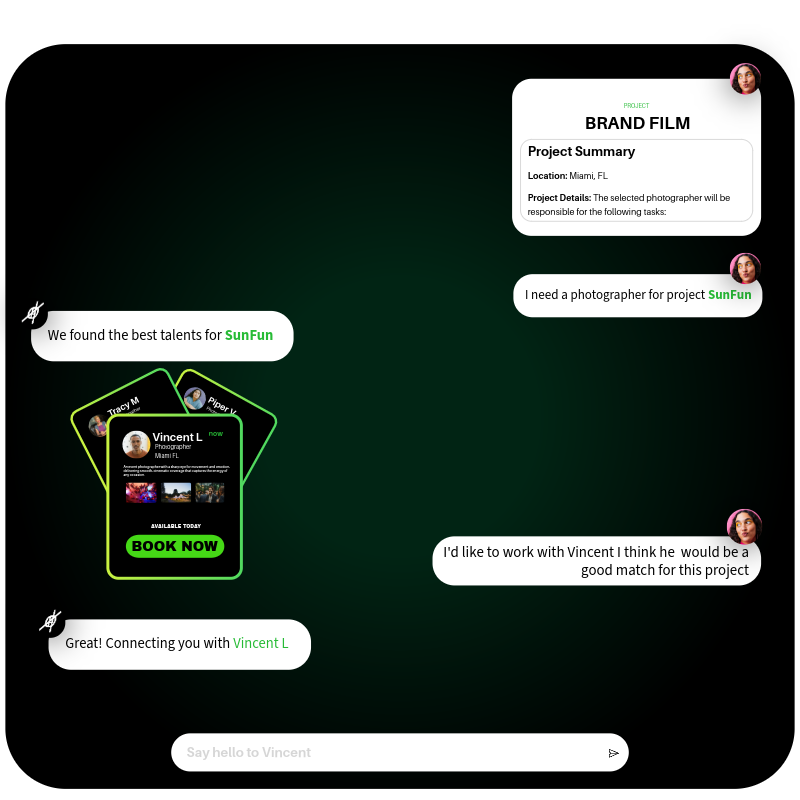 Go from idea → matched talent → booked in just minutes